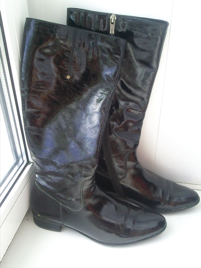 3. сапоги демисезонные, лаковые, отличное состояние. каблучок невысокий, набойки хорошие. размер 37. за 850 рублей