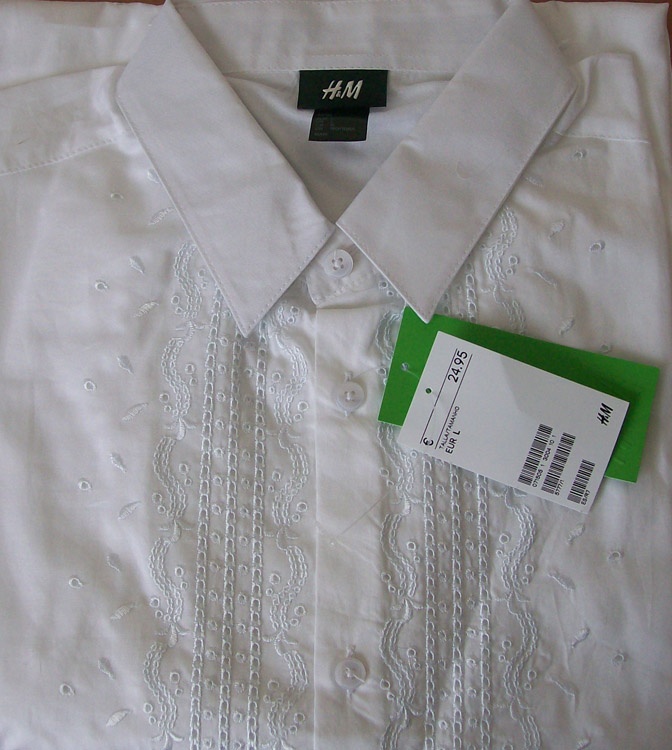 Стильная мужская рубашка шведской марки H&M (куплена на распродаже с большой скидкой), размер L, цвет белый, вышивка, качество великолепное.