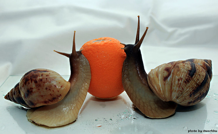 Гигантская африканская улитка ахатина – самое приемлемое домашнее животное для менеджеров и просто занятых людей. Этого домашнего любимца не нужно выгуливать, возить к ветеринару и тратить много денег на его еду.