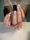 Вот, к примеру, на моих худющих пальцах и маленьких кистях рук второй вариант смотрелся бы пугающеНе буду спорить, вы все равно останетесь при своем мнении)) Уверена, что если бы мы сделали на одной ручке френч без удлинения, а на второй как положено, то 90% опрошенных проголосовали бы за второй вариант. Но нашлись бы и те, кому первый понравился бы больше. Это дело вкуса. Тут важно клиенту найти мастера, который делает то, что ему, клиенту, нравится. Я вредный мастер, я делаю то, что делаю)))