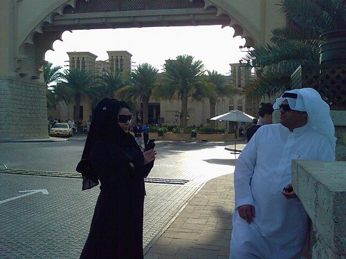 Верхняя одежда у заливских арабок - абайя и шейла (головной платок). В настоящее время в Заливе существует целая индустрия стильной мусульманской женской одежды, постоянно проводятся показы, меняется мода на крои и отделку абай, приезжают именитые дизайнеры и все это сопровождается огромной помпой. Только на моей памяти гремели последовательно кружева, Сваровски, рюши, плиссе, черная абайя и цветной платок, цветная абайя и черный платок, узкие, приталенные, широкие бесформенные абайи, из натурального шелка, из льна, смешанные композиции, такие орнаменты, сякие орнаменты - проще уже не следить за модой (а меняется она в среднем раз в 3 месяца), а носить то, что идет именно тебе. Я могу часами рассматривать где-нибудь в молле фланирующих арабок - абайи у всех разные и настолько интересные, что устать от смены моделей просто невозможно. Есть у них несколкьо общих мометов - все они черные, все - длинные (волочатся по полу), и все выглядят царственно (как любое грамотно сочетаемое макси, ИМХО). Шейла, которую повязывают особым образом на специально высокую прическу, смотрится своеобразной короной, прибавляющей женщине достоинства. Большинство арабок носят каблуки, походка у них неторопливая и плавная, они, как правило, никуда не спешат и не суетятся.