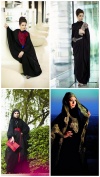 Забавна реклама абай - как правило, их принято фотографировать на моделях в обязательном окружении чисто арабской роскоши - шикарного особняка, лестниц натурального дерева, на фоне витража с видом на Залив, автомобиля Инфинити, часто - на фоне счастливой семьи (солидный муж и двое хорошеньких детей) и так далее - то есть реклама стремится связать стереотип хиджаба с высоким социальным статусом, богатством и успешностью.
