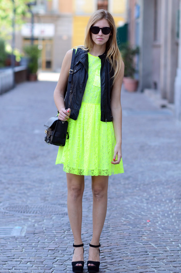Согласна, как правило это так. Но вот такой вариант с кислотно-зеленым платьем мне очень нравится. И ещё когда немножечко ярко-розового или кислотно-зеленого в отделке или аксессуарах.