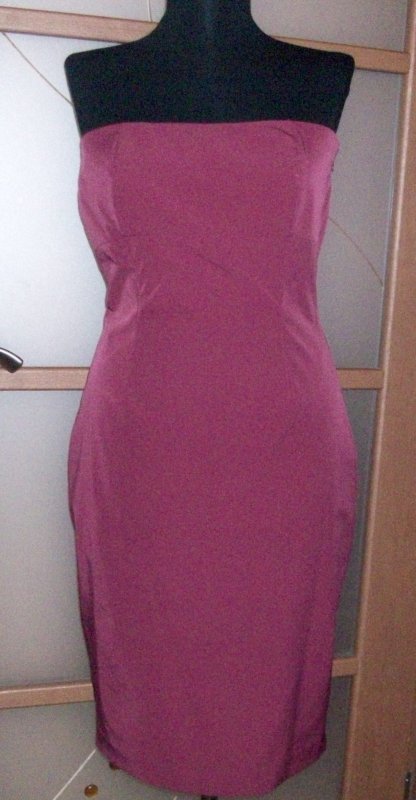 Новое, очень элегантное платье-футляр датской марки InWear. Это известный и популярный европейский бренд, ориентированный на творческих горожанок. Представлен в «Меге». Там цены на платья стартуют от 5 тыс. рублей. По крою - абсолютная классика, вне моды. Очень красивый "вкусный" цвет - глубокий винный оттенок. Отличная ткань - она с каким-то матовым покрытием, из такой иногда шьют плащи, она немного тянется. С подкладом. На замке. С рубашкой или водолазкой выглядит строго. Без - праздничный вариант. Очень практично. Все превращение -полторы минуты. По верхней кромке лифа - кант из силикона, чтобы держалось на голом теле. Можно с поясами поиграть. Размер американский 4, европейский 38 на 44 полный российский. Я с 42-м вываливаюсь из этого платья. Грудь до 88-89 см, талия - до 72-74 см, бедра до 98-99.