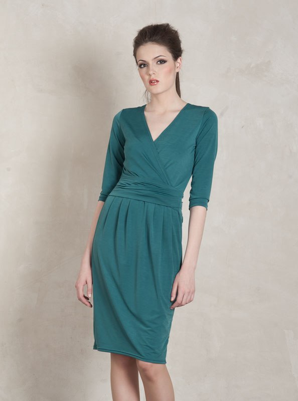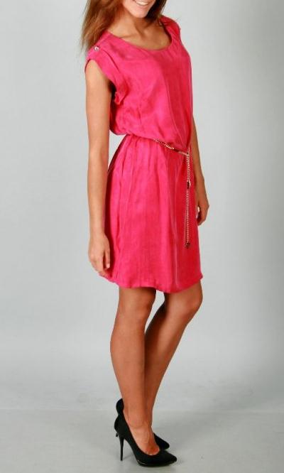 6. Платье цвета фуксии Promod (верх трикотаж серый, низ х/б фуксия). Тоже хорошо смотрится с болеро. Цена 500 руб.