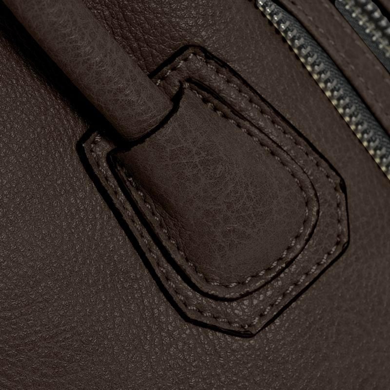 Кожзам, металлический замок, водоотталкивающий материал. Есть длинная ручка через плечо (пристегивается отдельно).