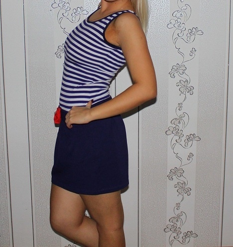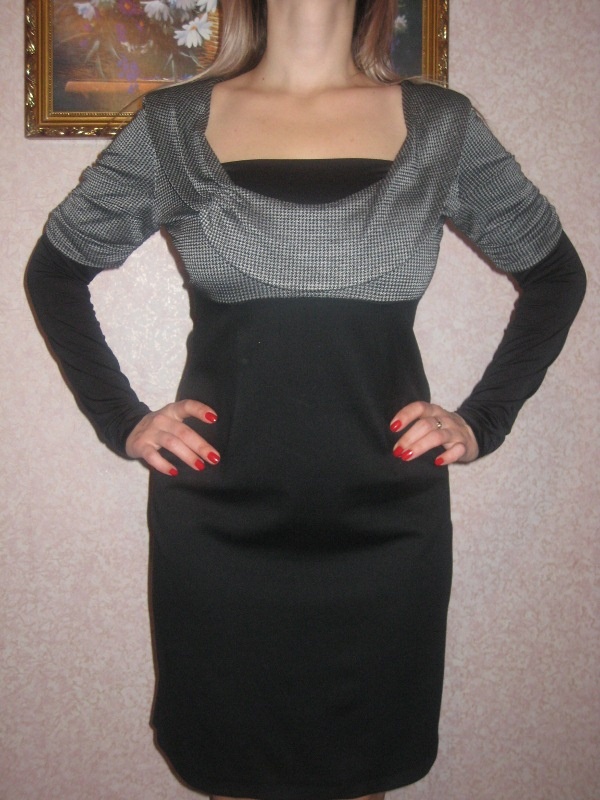 5. Платье "Плэнет" - трикотажное, из закупки шведской одежды, цвет какао. Р. 46, трикотаж плотный, но не толстый. В комплекте с платьем идет ремешок. Модель очень интересно смотрится - хорошо видно на фото с синим платьем, а цвет - как на втором платье. Цена - 500 руб.