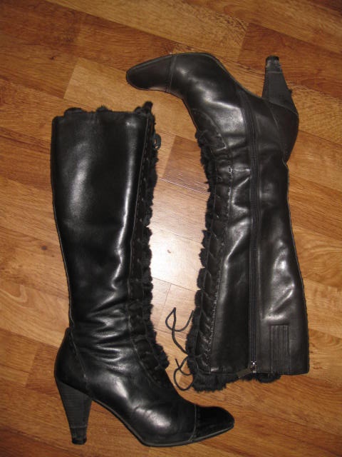 В ответ на: Продам новые сапоги, зимние, бренд Vitacci. р.40 (реально на 38,5-39), кожа натур., черные, до колен, замок на всю длину, евромех (мех до щиколотки, далее- байка), сзади декоративная молния. Мне подошли только на голую ногу, на носок/зимние колготки не надену. Моя стопа 25,5, на 25 должны быть хорошо. Арт. H0111-1731, можно еще посмотреть на сайте vitacci.ru. Сапоги красивые, оригинально смотрятся. По моим ощущениям, что на неполную ногу. По размеру они мне очень плотно, поэтому и продаю.