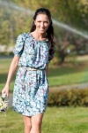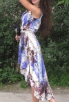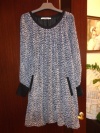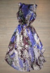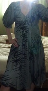 также на 44 (у него маркировка 46, но ОГ точно до 89-90см иначе не застегнется сбоку замок), ткань вискозная, легкая, но не тянется, в глажке не нуждается, очень хороший вариант на лето-отдых, не требует особого ухода, цвет темно-темно-синий с бежевым рисунком, длина также при 170 до колена, в талии оно свободновато, можно и с пояском носить, свой я для наглядности приложила, платье без пояса продавалось