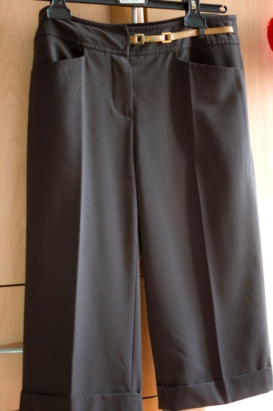 1) Летние темно-коричневые офисные шорты французкой марки BGN, размер 36, на российский 44. На ОБ до 94. Длина 66 см. (чуть закрывают колени). Состав 48% шерсти, остальное полиэстр, лайкра.