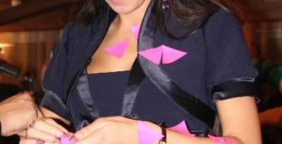 В отличном состоянии. Отклеилось несколько стразиков, которыми выложено название фирмы. Можно оторвать остальные и будет все зелененькое. Впрочем, если не отрывать, никто ничего не заметит.