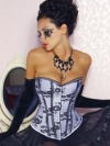 Нежный корсет с изящной линией декольте, украшен кружевом с цветочным узором. Спереди - крючки, сзади - классическая шнуровка.