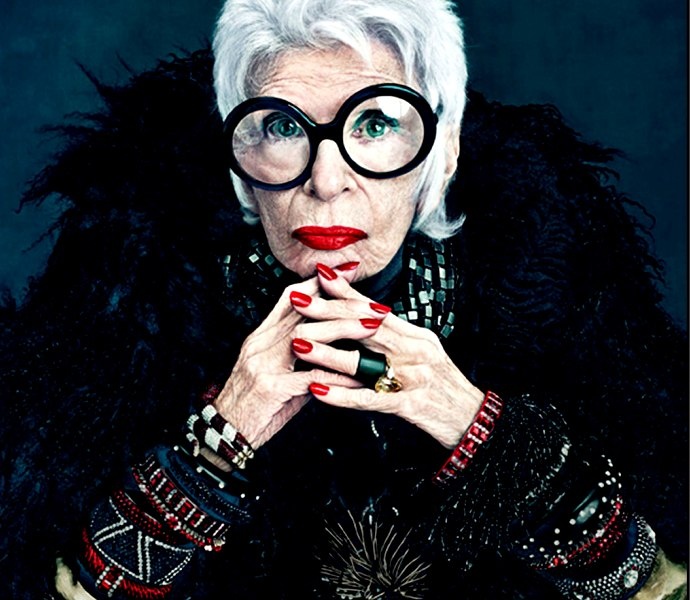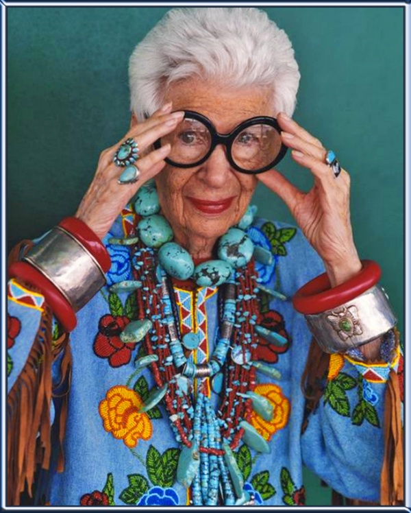 А мне еще вот эта дама очень нравится. Для кого-то это городская сумасшедшая, а по мне стильная и яркая женщина, которая не боится экспериментов и общественного "Фи!". Айрис Апфель 1921г.р.