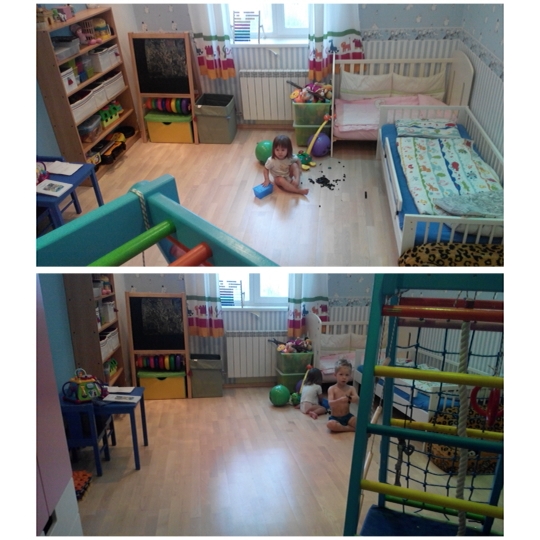 Мы пока укладываемся в разных комнатах. Муж Никиту, я Аришу. Если их вдвоем положить и читать, как привык Никита, то они начинают баловаться и хохотать. Пока так. Моя мечта-положить их по кроваткам, помахать пока-пока и упорхнуть!