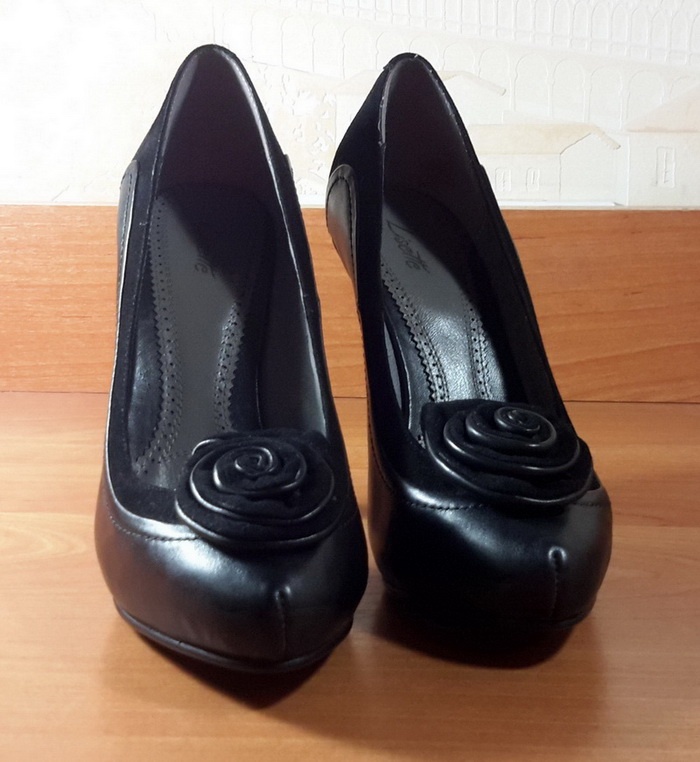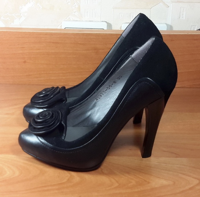 Материал - нубук. Удобная колодка и устойчивый каблук. Приобретались за 5 тыс. рублей. В носке были 1 раз на корпоратив. Не подошли по размеру, пришлось переобуваться прямо на празднике