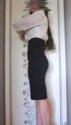 Куплен в СП "Знатная дама". Полностью на подкладе, пиджак - застежка двубортная, карманы, юбка - прямая, отделочные строчки, скрытая молния, сзади - шлица. Цвет на бирке указан коричневый, в реальности - красивый благородный цвет (фото сделаны со вспышкой, без выпышки получается как серый). Примерка - недалеко от метро "Речной вокзал".