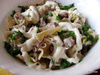 Примерно после часа тушения мяса всыпал туда порезанные стебли зелени.