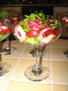 Заправка суперская .. впрочем как и сам салатик - пальчики оближешь авокадо оказался недозрелым)) обошлась без него, и захотелось в креманки салат уложить...