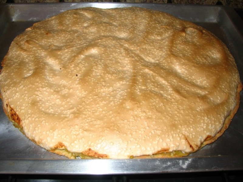 Сверху начинку покрыть взбитыми белками (3шт) с 1 ст. сахара.