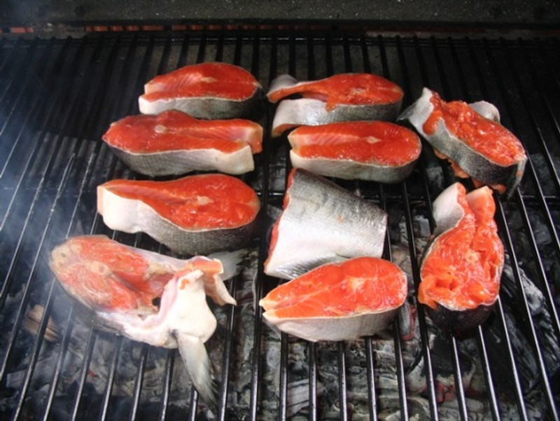 Примерно за час-полтора до того как поместить на решетку обсыпала немного приправой для шашлыка и гриля и чуть-чуть смазала оливковым маслом. С каждой стороны запекалось около 5-10 мин.(пока слегка не поджарилось :D). Тоже объеденье .Очень нежная рыбка получилась.