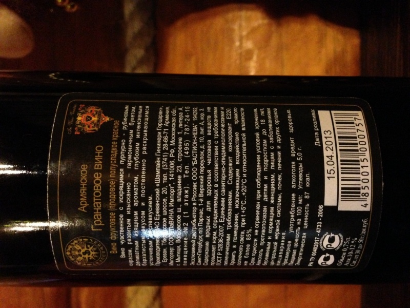 • Посчастливилось найти в нске гранатовое вино !!! Я в восторге от него !) однозначно вкуснее турецкого ! Совершенно насыщенный гранатовый вкус , плотный , вяжущий , и такой природно-сладкий ( не приторный !!!) вот прям рекомендую попробовать ! Цена - около 400 руб , точно не помню . Продаётся в винном бутике на сибирской ярмарке ( где бывший дом на красном )