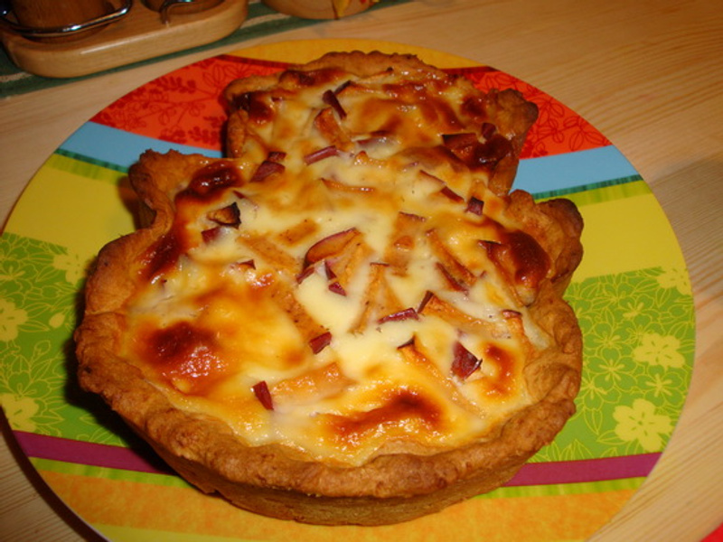 ). Сделал тесто по рецепту, показалось мало(т.к. маленьких форм для выпечки нет, одни большие противни) сделал еще, в общем в итоге на тесто ушло в три раза больше ингридиентов чем в рецепте. Видимо положил маленько меньше муки и бортики никак не получались, не фиксировались все время скатывались, в итоге сделал бортики из самих яблок