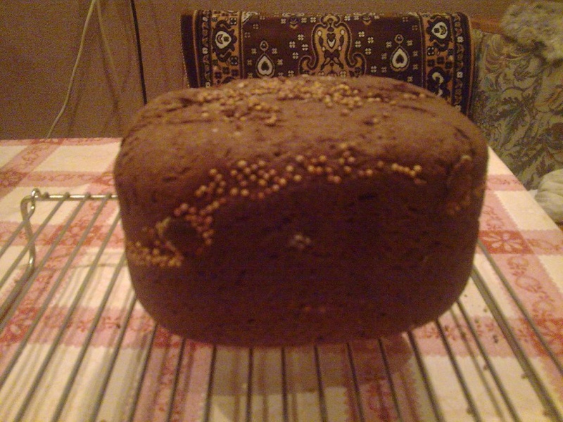 А тут, вроде, неплохой еще один рецепт.Никакой это не бородинский, но вполне приятный ржаной хлебец. Еще б ХП была не такая маломощная, пришлось время выпекания вручную добавить, а то даже ржаной хлеб там белый получается.