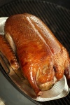Если есть гриль, то желательно совмещать копчение с жареньем, только поддончик маленький алюминиевый возьмите (жира много) .