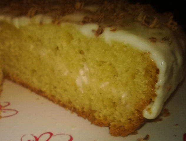 Пирог из ведерка пришлось отделять сначала лопаткой, как от противня в духовке, ведерко пришлось замочить водой, оно было такое же, как противень.
