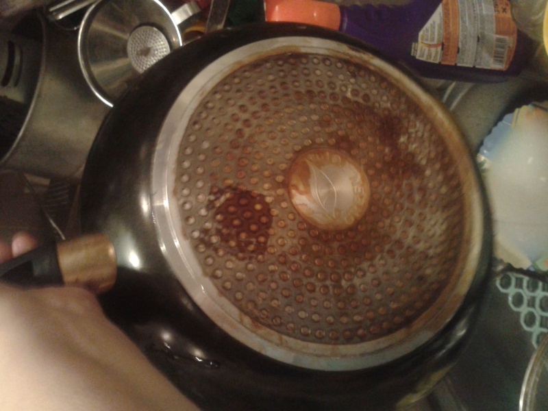 Ниже-снимки сковороды после жарки куриных крыльев,которые я еле отодрала