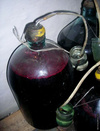 Для изготовления вина необходима специальная посуда. Мы используем 5-ти и 20-ти литровые стеклянные бутыли. Вот именно в такие бутыли нужно и слить полученный виноградный сок. Наливать следует не полностью, а на 2/3 емкости, чтобы вину было где «играть». Налив сок, бутыль нужно закупорить специальной крышкой: в ней проделывается отверстие, в которое вставляется трубочка. По этой трубке и будет выходить углекислый газ, нужно опустить ее в баночку с водой, предварительно продув.