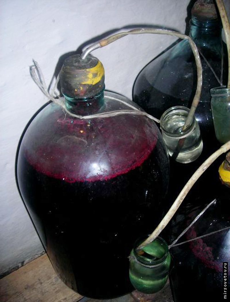 Емкость следует поставить в темное нехолодное место (температура 18-25 градусов), и не беспокоить попусту (не взбалтывать, не открывать). Во время брожения из трубочки непрерывно выходят пузырьки газа. Окончание брожения определяют по отсутствию пузырьком длительное время. И даже после этого, следует дать вину (а это уже молодое вино, а не сусло) немного отстояться.
