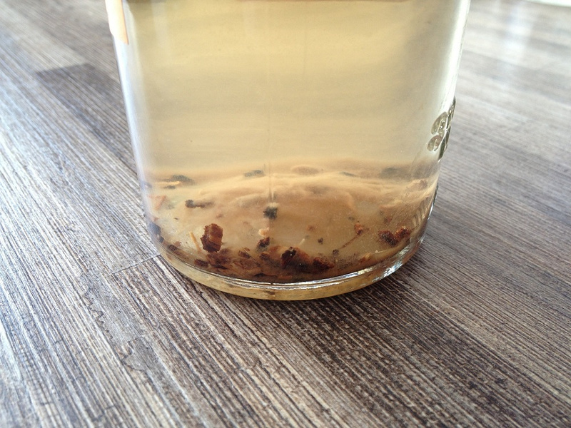 Соединить обе смеси, влить треть стакана спирта. Настаивать 10-12 часов в холодильнике.