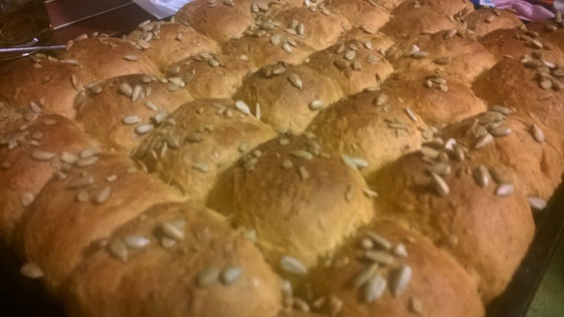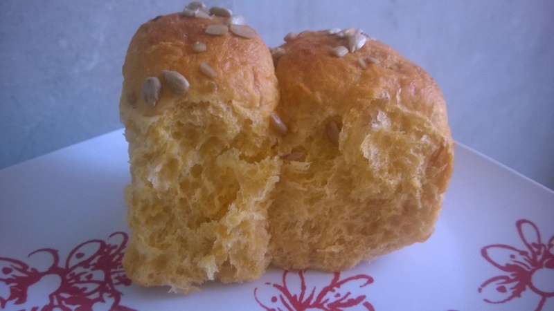 Выпекала в разогретой духовке на 210 градусах 30 минут. (первые 20 у меня на дне духовке стояла ёмкость с водой). Несмотря на весь мой ужас от того, что они слиплись - мои булки меня порадовали и очень легко отделились друг от друга при помощи острого ножа. Остудила на решетке. Сверху получились хрустящими, внутри мягкими и аромат стоял потрясающий (мои соседи в очередной раз были мне очень благодарны, особенно те, что сидят на диете