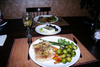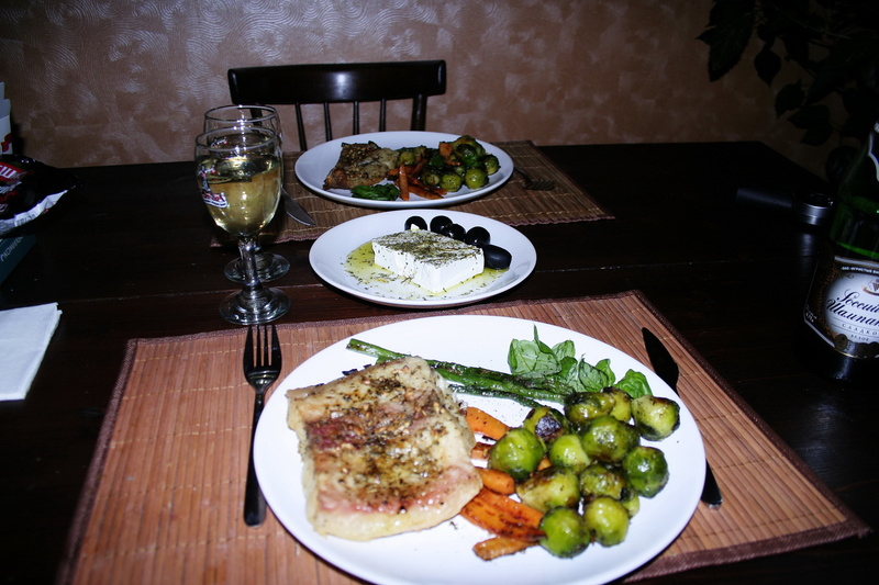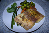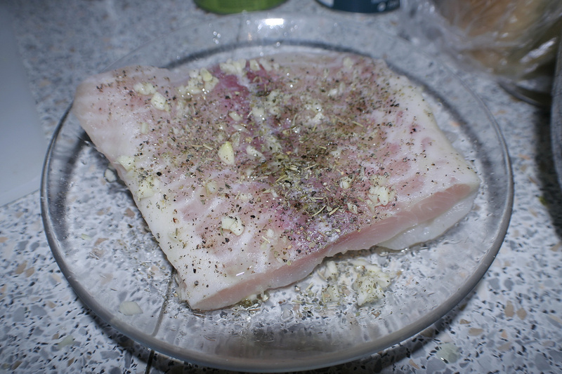гарнир-соус : на горячую сковороду вливается оливковое масло, добавляется много лука+филе, тушится немного, затем добавляется томатная паста (если бы был дачный сезон были бы просто домашние помидоры) и основное время это все тушится вместе, по мере приближения готовности добавляются консервированная фасоль+маслины и приправы - у меня были мята+паприка+черный перец+1 зубчик чеснока для аромата и хорошо бы базилик, но не было, добавила аджики для аромата (я люблю острое)