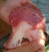 Начиная от последствии уколов, вплоть до крупинок-друз актиномикоза... Тогда это может быть опасно, если ножем которым резали это мясо (без особой обработки типа кипячения) потом резать что-то другое, не подвергаемое в процессе готовки тепловой обработке?