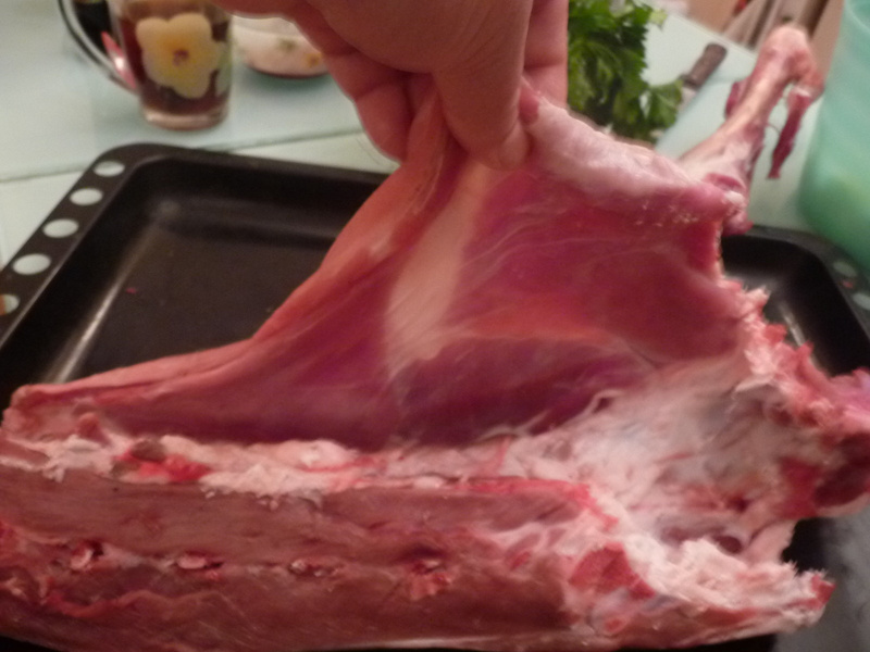 может кто подскажет.. мне рёбра срезали а у позвоночника осталась такое тонкое мясо.. на что оно лучше пойдёт??? - фото вдоль хребта.Это самый кошер!(не тот лохмоть, что подняла, его на фарш, а то, что вокруг позвоночника) Режь на медальоны, прям с костями и жарь на гриле.