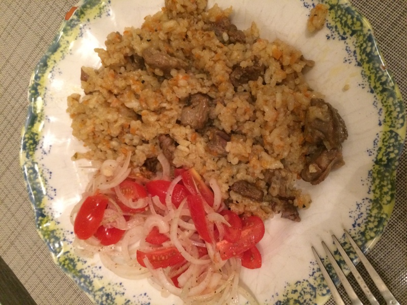баранина попалась жесткая, долго варила зирвак, морковка растворилась, рис-г..но попался. В общем, получилась вкусная мясная каша, но пловом не назову))) и салат из лука и помидор с каплей уксуса.Ответ на сообщение А что у вас сегодня на ужин? пользователя MissK