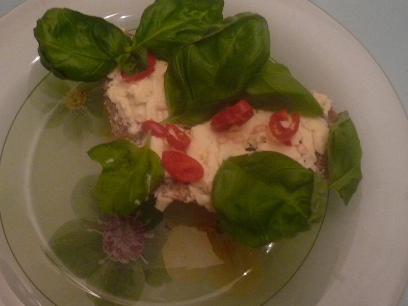 Всякие там гренки с чесночком и травками, политый капелькой оливкового на заднем плане. Я один их съел.)))