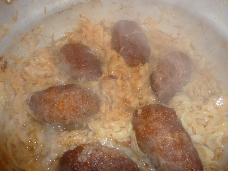 Сегодня сделала так. Обжарила фарш с луком и морковкой, у меня была мелконарезнанная телятина еще (как на поджарку) - обжарила еще минут 10 все вместе, добавила квашеную капусту, немного еще обжарила, добавила соль, специи, добавила стакан риса, полтора стакана воды, в мульте режим каша 20 минут (скороварка). У меня все едят с удовольствием.