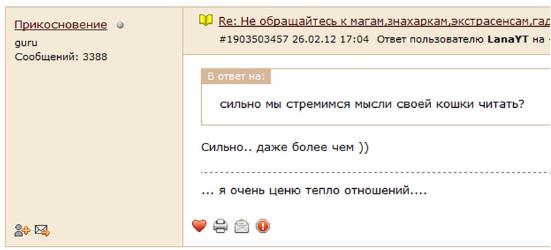 не не понимаю, только предлагаю не терять чувство меры - и не более того, а то реально форум вразнос пошелНе только я, Вика уже несколько раз поднимала вопрос о прекращении бесполезного трёпа. Устроили из одного из немногих более менее серьёзных форумов - помойку. Простите за низкий слог. Сами разговоры разговариваете с теми, кто к эзотерике вааще никакого отношения не имеет.
