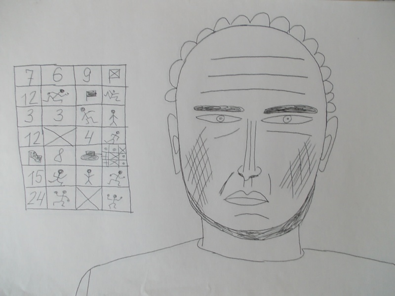Потом летом 2004 года в июле я взял бумагу (чистые листы, уже не в альбомах делал) и сознательно захотел, что-то предсказать (теракт конечно), я составил такой рукописный календарь (как обычные календарики, только не за весь год) и обвел там числа наиболее вероятные для проведения теракта. Потом начал делать рисунки (Еще мне удалось у углу каждого листочка поставить дату, когда рисунок был сделан). Потом уже 20 августа 2004 года я опять взял чистые листы бумаги и стал рисовать и опять поставил дату, когда рисунки были сделаны. Потом произошел теракт 1 сентября 2004 года в Беслане (Осетия). Я не смотрел рисунки. Потом примерно 17-18 сентября я посмотрел рисунки, сопоставил их с событием и понял, что я опять предсказал теракт. Тогда я обратился в газету. Обо мне напечатали статьи в неск. газетах и показывали меня по телевидению несколько раз.