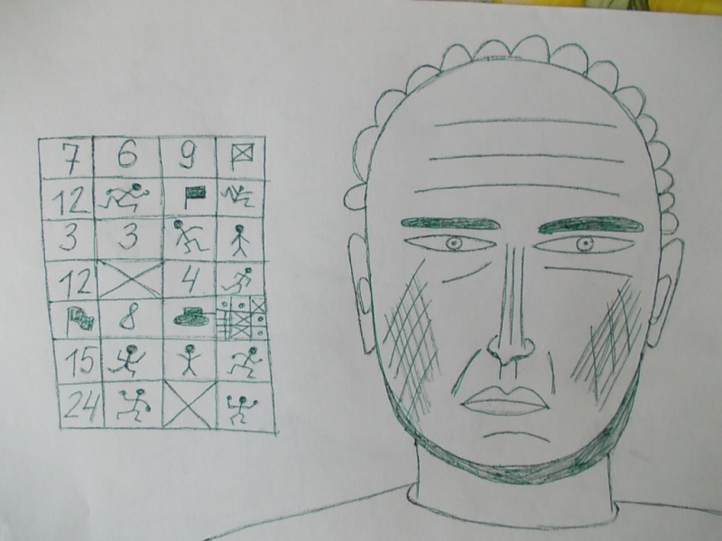 Все рисунки я расшифровал сам, без посторонней помощи. Летом 2000 года я купил и прочитал книгу, автор Дэвид Кан, "Взломщики кодов", что возможно мне чем-то помогло или было стимулом, чтоб так расшифровать свои рисунки. Летом 2002 года я сидел на плотинке в Екатеринбурге в летнем кафе и случайно все вспомнил, как я сделал странные рисунки в Новый год 2000-2001 г. г. Когда приехал домой в Каменск-Уральский, то достал свои рисунки и обомлел, когда увидел даже только первый рисунок. Лучи солнца из угла делят горы на части-похоже на бомбежку Афганистана. И второй рисунок-флаг Японии (ведь можно было подумать на Японцев, что это они, а не Усама бин Ладен, организовали и совершили теракт 911, из мести за бомбежку ядерными бомбами городов Хирасима и Нагасаки в 1945 году ), также, когда я только закончил первый рисунок (горы и солнце), и начинал делать второй, то хотел нарисовать олимпийские кольца, а сделал почему то флаг Японии, и наконец совершенно меня впечатлил третий рисунок-изображение генерала или адмирала в коричневой форме (при виде его сразу же напрашиваются слова-ПЕНТАГОН или ПИНОЧЕТ), сначала я расшифровал код 5670, так, что 567-это означает, что три самолета попали в цели, а 0-то, что четвертый самолет не попал в цель. Действительно-четвертый самолет, захваченный террористами, летел на Вашингтон, но упал на землю не долетев до цели. Я еще где-то слышал, что негры не дали долететь ему до места назначения. На рисунках все четыре цифры-5670 написаны не просто так, а вставлены в так называемые ячейки, я просто работаю сейчас в системе Виндоус 7, и я не умею здесь вставлять таблицу, а так нужно было бы вставить таблицу из четырех клеточек (таблица - одна строка, четыре столбца) и в каждую клеточку вписать одну цифру. Сначала я расшифровал цифру 7 так, что Вашингтон-это столица большой семерки и третий самолет прилетел туда и врезался в Пентагон, а 5 и 6-это близнецы. Сейчас же я придумал вот еще, что ноль-мимо, четвертый самолет не долетел до цели, негры не дали, но цифра (слово)-ноль, тоже начинается с буквы Н, как и слово НЕГРЫ. В 1992 году, я, когда учился в 7 А классе, сделал на уроке рисования странный рисунок (мы рисовали на свободную тему, кстати мне поставили за рисунок оценку-четыре): на двух листах формата А4, на первом листе три офицера американской армии (примерно 1850-1890 годы), на втором листе один офицер американской армии и нарисован БАР (и на вывеске написано БАР), если же слово БАР прочитать наоборот с другой стороны, то можно прочитать РАБ, а как раз НЕГРЫ (бывшие рабы в США) не дали долететь четвертому самолету до цели. Дело в том, что когда я учился в 7 классе, то я влюбился в девочку Алену Сергеевну Прохину и нас еще посадили вместе, потому что я был отличником, и она попросила классного руководителя посадить ее со мной. Все мои рисунки так или иначе связаны с ней. И в конце 2000 года неожиданно для меня мои чувства к ней вдруг проснулись и вспыхнули с необъяснимой силой. Этому способствовало еще то, что по радио тогда передавали популярную песню группы ВИАГРА: что-то АЛЕНА СПАСАЙСЯ ПОКА НЕ ПОЗДНО, НО ПЯТЫЙ МОЙ БЫЛ СОВСЕМ НЕ ТАКОЙ (И голос этот как то сильно подошел Прохиной Алене, как мне показалось). И на волне этой любви я в Новогоднюю ночь и сделал три рисунка: горы, флаг Японии и генерала с самолетом и дзюдоистом. Тогда же мы в университете, где я учился проходили курс ОТАУ-Ос