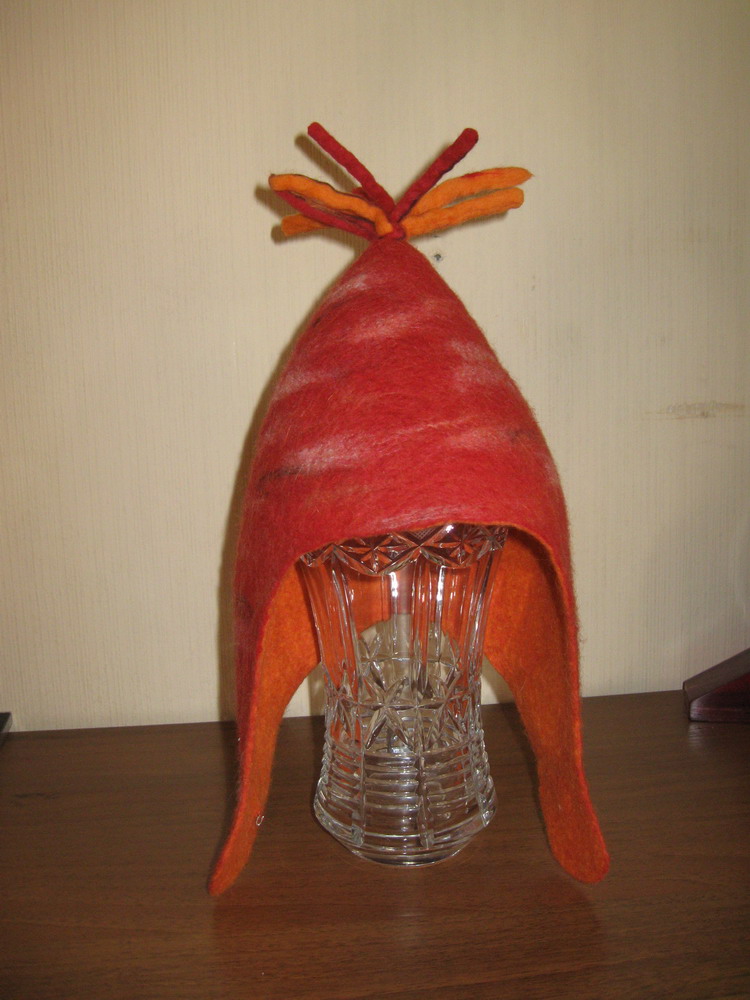 ) с учетом усадки примерно 40% ) и уваливаем в стиральной машинке. Вытаскиваем, придаем форму, сушим на батарее, украшаем и получаем вот такую красоту