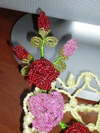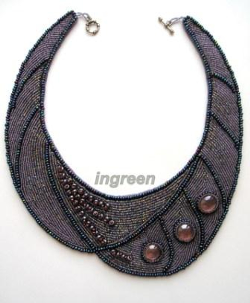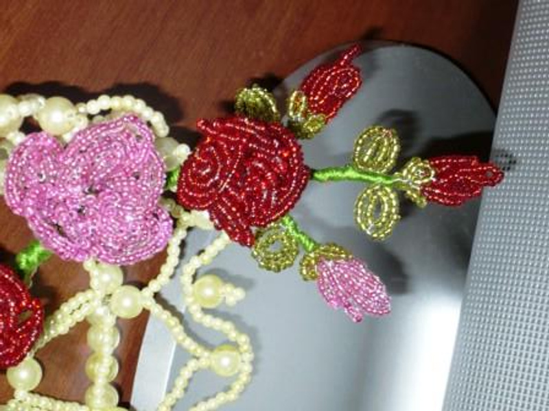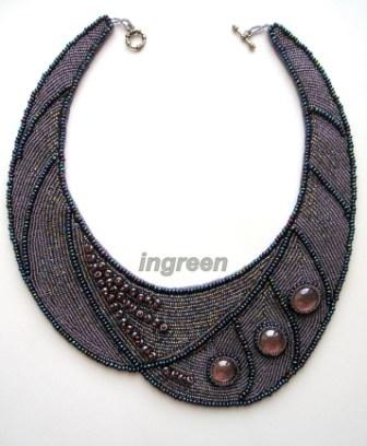 Очень люблю бисер, к сожалению не удается уделить достаточно времени этому занятию. Потихоньку осваиваю разные техники бисероплетения. Последнее увлечение, это вышивка бисером. Сделала вот такое колье.