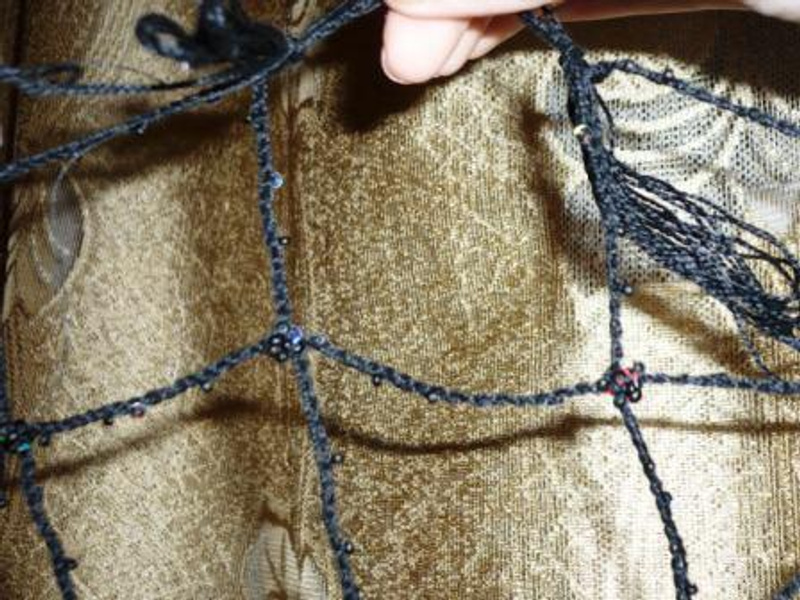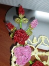 * летний платок-сетка на плечи для платья или сарафана ( размером с полноценную шаль) из ниток "ирис" с подплетением бисера,пайеток и украшенный объемной вышивкой- цветами из пайеток.