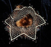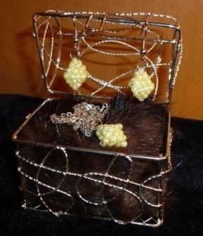 В работе : кольцо с объемным цветком, пасхальное яйцо с орнатментом, колье с мехом норки, вечерняя сумочка.