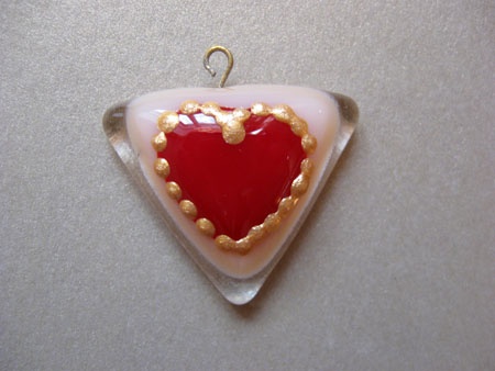 Лэмпворк от Остин Гамильтон, прессованный коралл, стекло, застежка-тоггл в виде розы.
