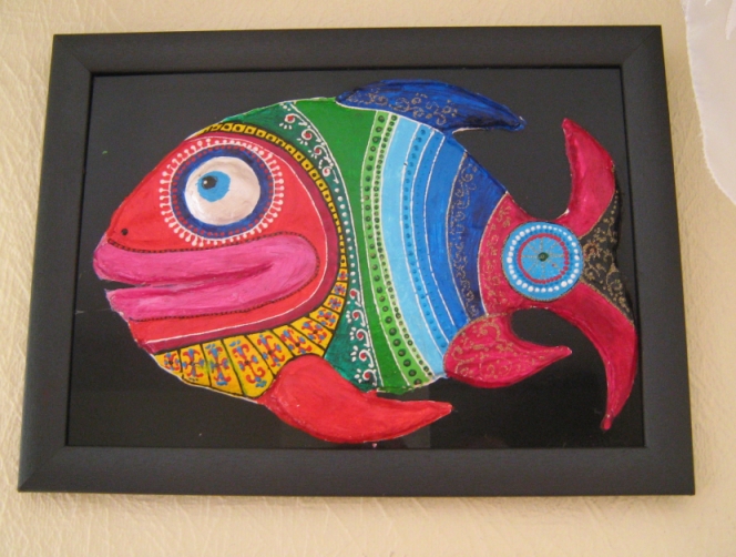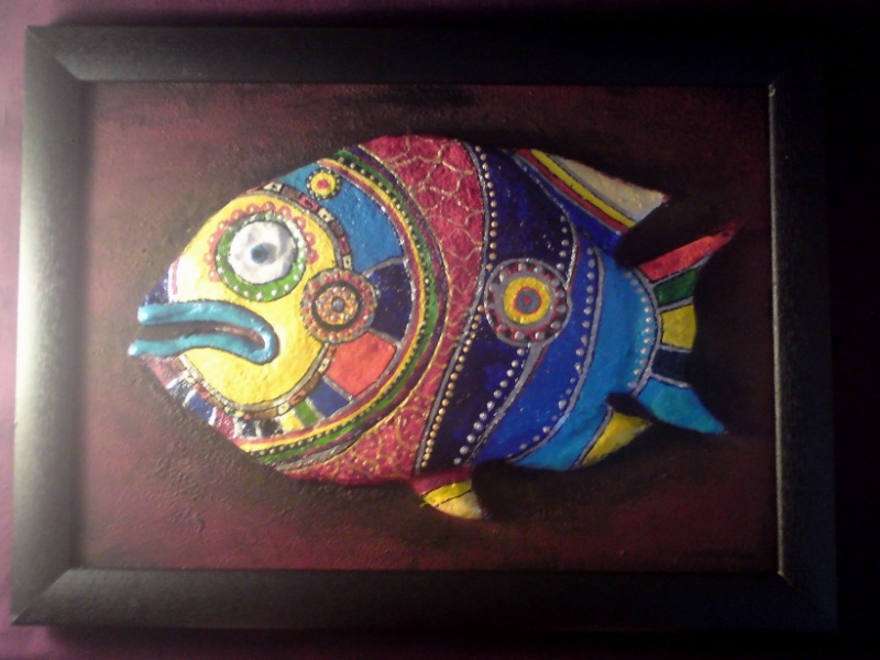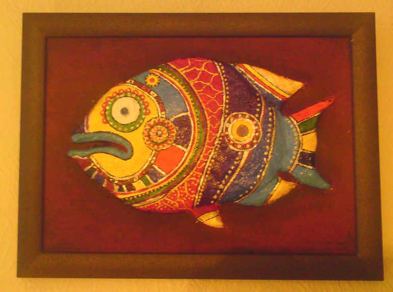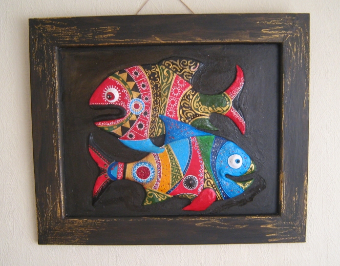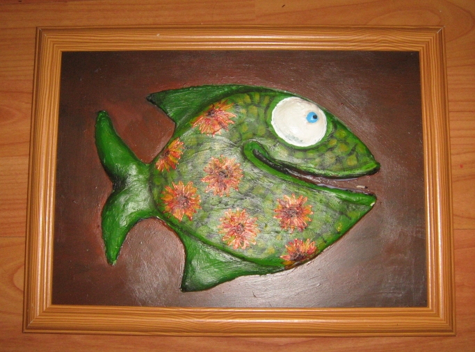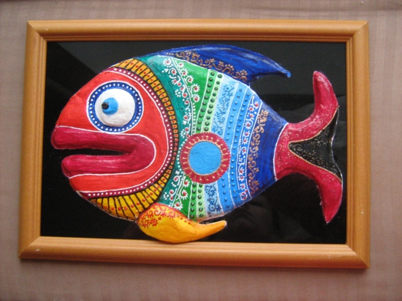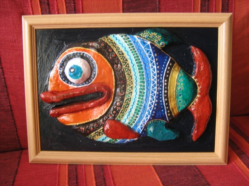 • Объемная картина на стекле. Рыба объемная, вылеплена вручную