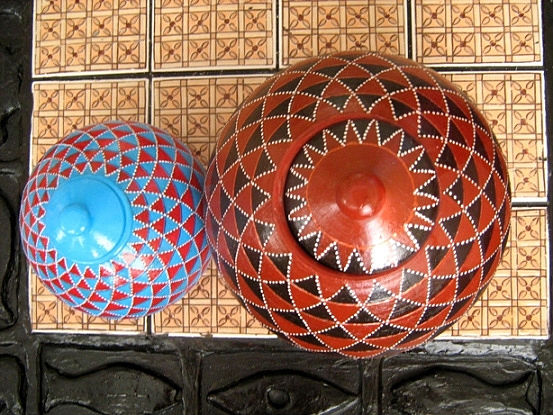 • ваза стеклянная, большая под фрукты. Роспись фактурная под старинные африканские изделия из дерева